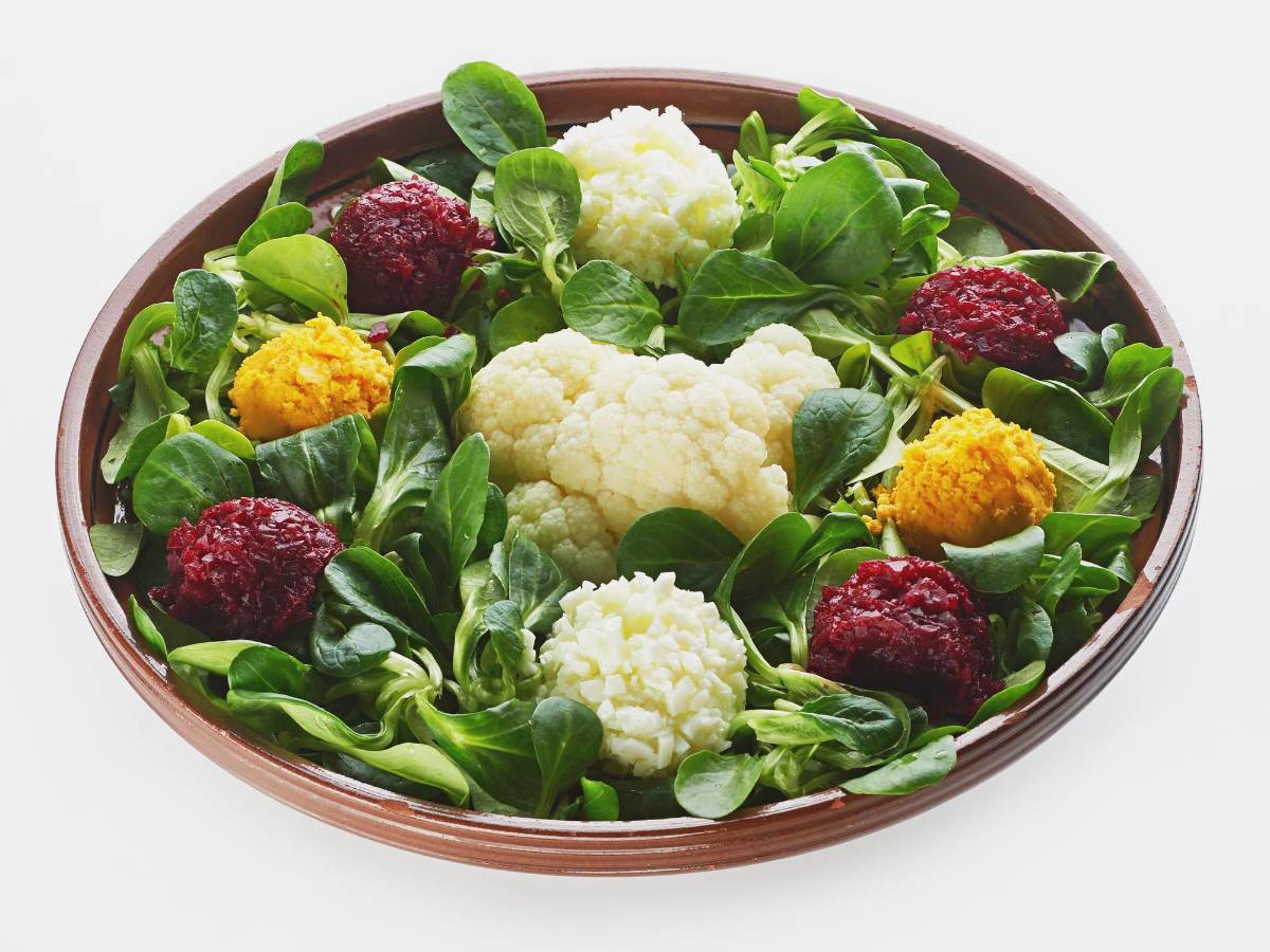 这道沙拉源自斯洛文尼亚的第一本烹饪书——1799年由瓦伦丁·沃德尼克(Valentin Vodnik)出版的食谱。它选用嫩滑的应季野苣,以油醋调味,巧妙摆放出对称的造型,佐以细碎的水煮蛋、腌甜菜和整颗花椰菜,色彩丰富、赏心悦目。