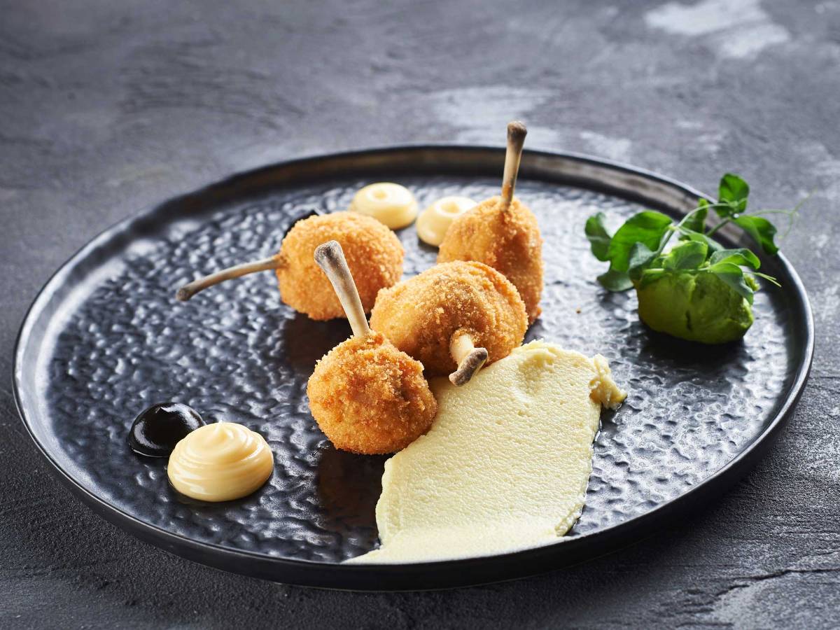 这道菜名颇具幽默意味,它源于17世纪时,卢布尔雅那河畔旧港口工人的日常菜肴。菜品主角是香酥的鸡腿与鸡翅,名称里的“žganci”是用荞麦粉或玉米粉制成的糊状食物,常被视为贫困与生计的象征,因而其全名“Leteči(飞行的) žganci”既点出了鸡肉代替糊粥的趣味对比,也折射出当年市井生活的智慧与幽默。
