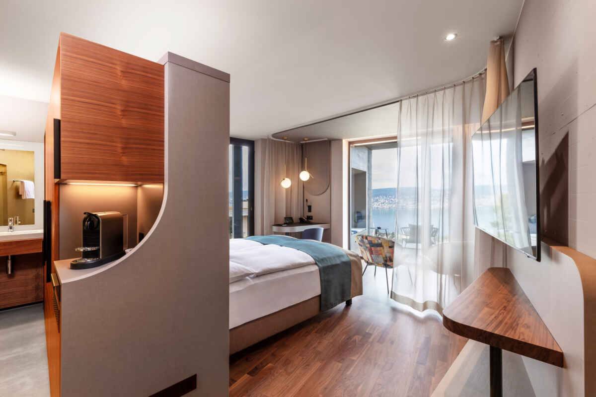 湖景全景俱乐部房含专属客房与初级套房,配备可以欣赏到湖景的阳台——专为崇尚静谧、美景与舒适体验的宾客打造。套房配备按摩浴缸,入住即赠水疗中心体验用品包。