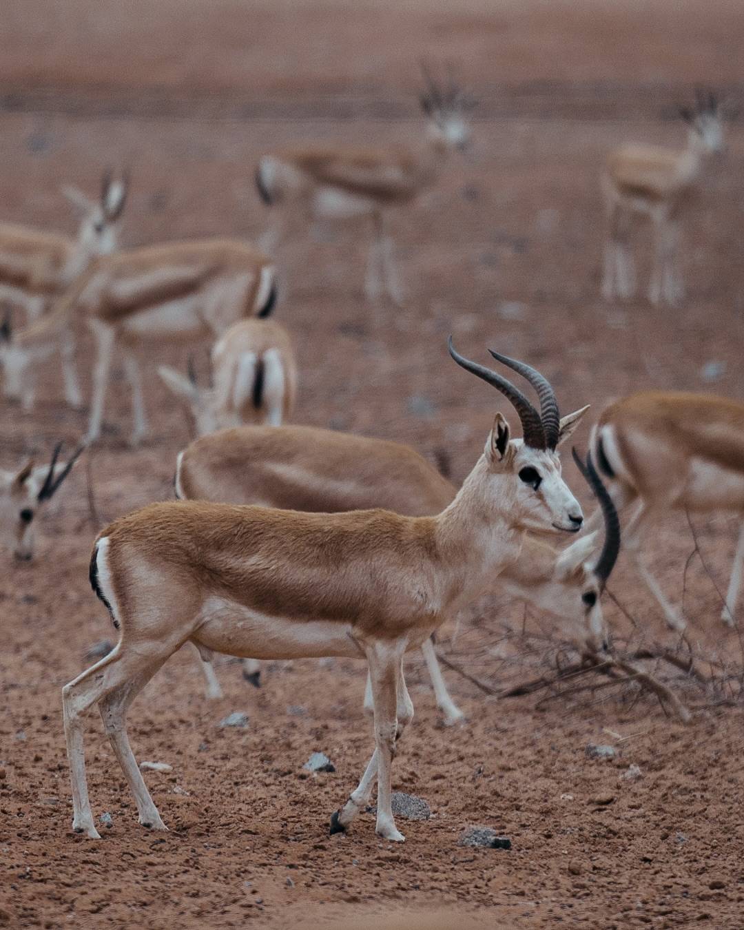 在这片看似荒芜的土地上,生机悄然绽放。优雅的瞪羚与世界上体型最小的狐狸——耳廓狐在此栖息,展现着沙漠生态的灵动与韧性。