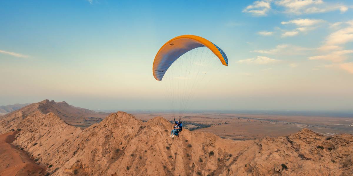 在广阔天地间,纵享一段刺激的滑翔伞体验。与专业飞行员结伴,翱翔于深红大漠之上,以飞鸟的视角捕捉其令人屏息的胜景。
