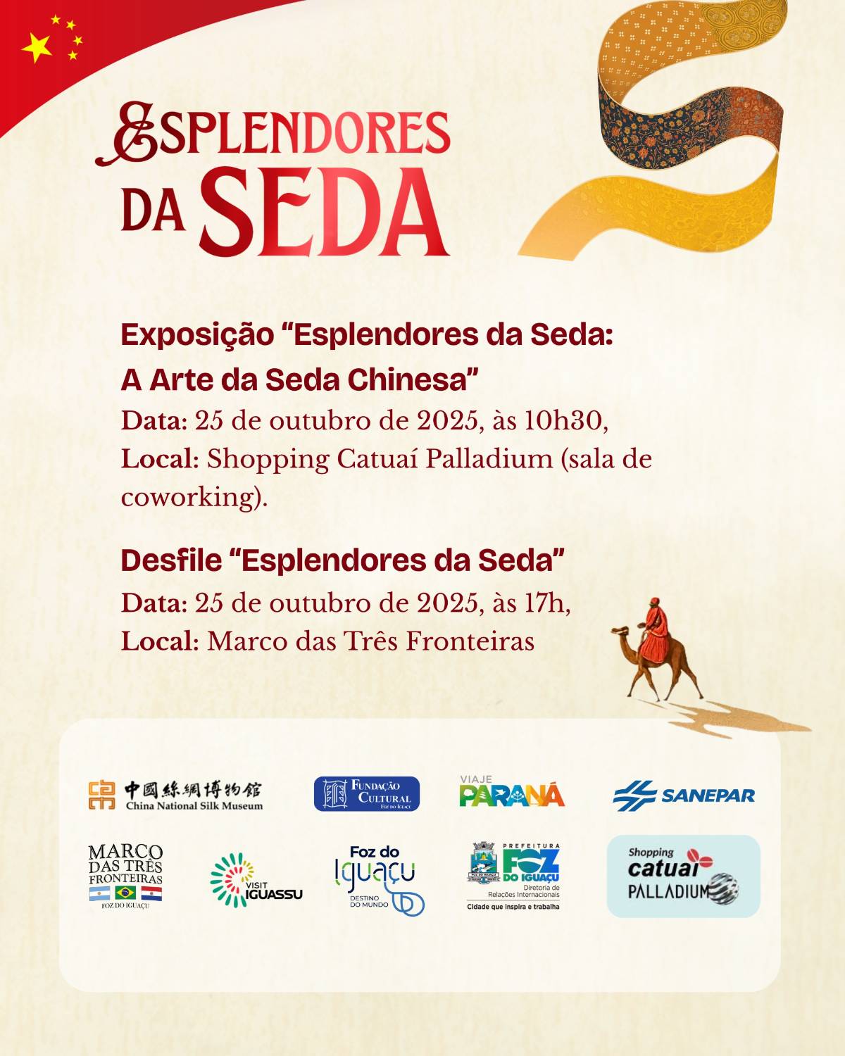 由中国丝绸博物馆与巴西伊瓜苏(Foz do Iguaçu)市政府携手推出的 “丝路绮粲” 艺术展览与国际时装秀,将于2025年10月25日于伊瓜苏市区正式开幕。这一活动不仅是中巴文化交流的重要里程碑,更是现代丝绸之路联结东西方文明的生动见证。