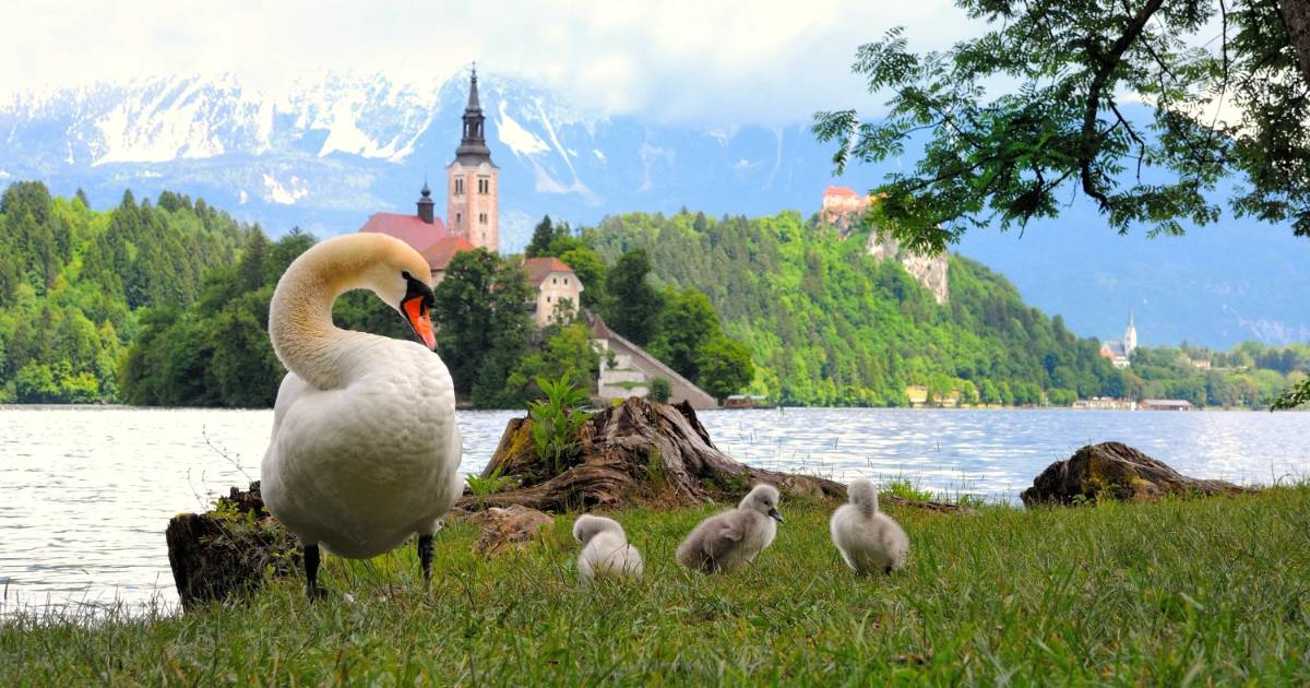 布莱德湖(Lake Bled)由博希尼冰川(Bohinj Glacier)消融积水而成,湖面常见野鸭天鹅嬉游,各类水生植物繁茂生长。