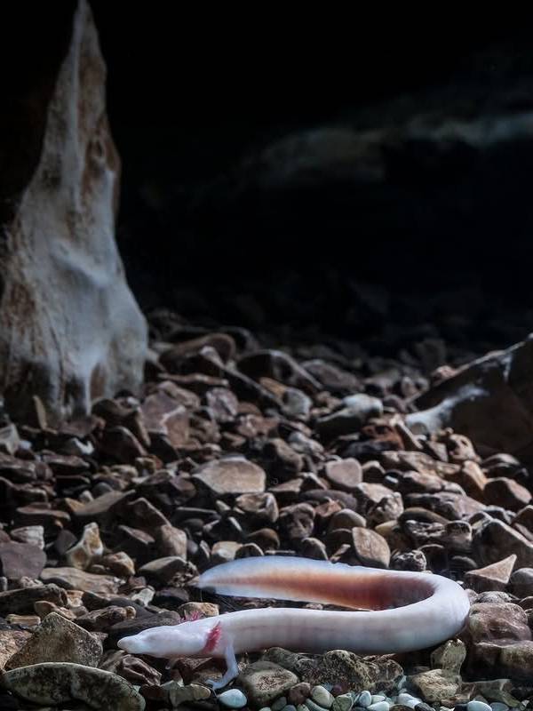 波斯托伊纳溶洞(Postojna Cave)的幽暗深处,生活着一种神秘的生物。它们身长约25至30厘米,肤色苍白近乎透明,红色外鳃如火焰般轻柔摇曳,没有眼睛却能“看见”黑暗中的世界。人们称它们为