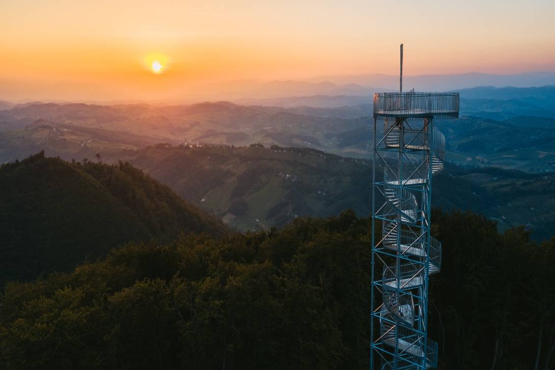 在波德切特泰克(Podčetrtek)的Rudnica山,高35米的观景塔俯瞰的是起伏的丘陵与丰饶的田野,每一片绿色仿佛都浸透着葡萄酒的温柔与希望。