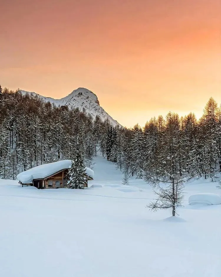 贝尔盖尔(Bergell)之间。这里没有拥挤的度假人潮,只有连绵的雪峰、冰封的湖泊与覆满白雪的松林,构成一幅宁静而壮丽的阿尔卑斯冬日画卷。