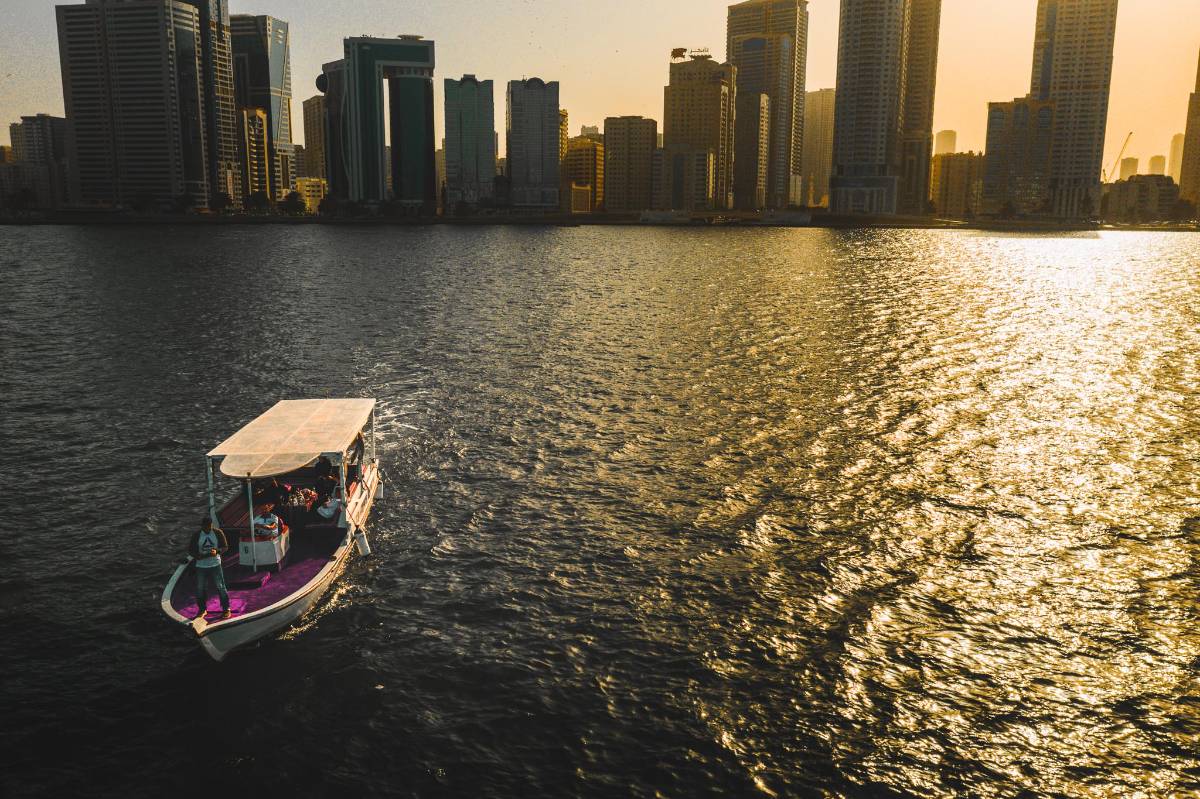 想换个观景视角?搭乘阿拉伯传统的阿布拉船(Abra Boat)无疑是最地道、最浪漫的方式之一,从水面领略沙迦的城市精华:阿尔马亚兹滨水城、阿尔卡斯巴运河(Al Qasba)以及沙迦历史区的迷人风貌。