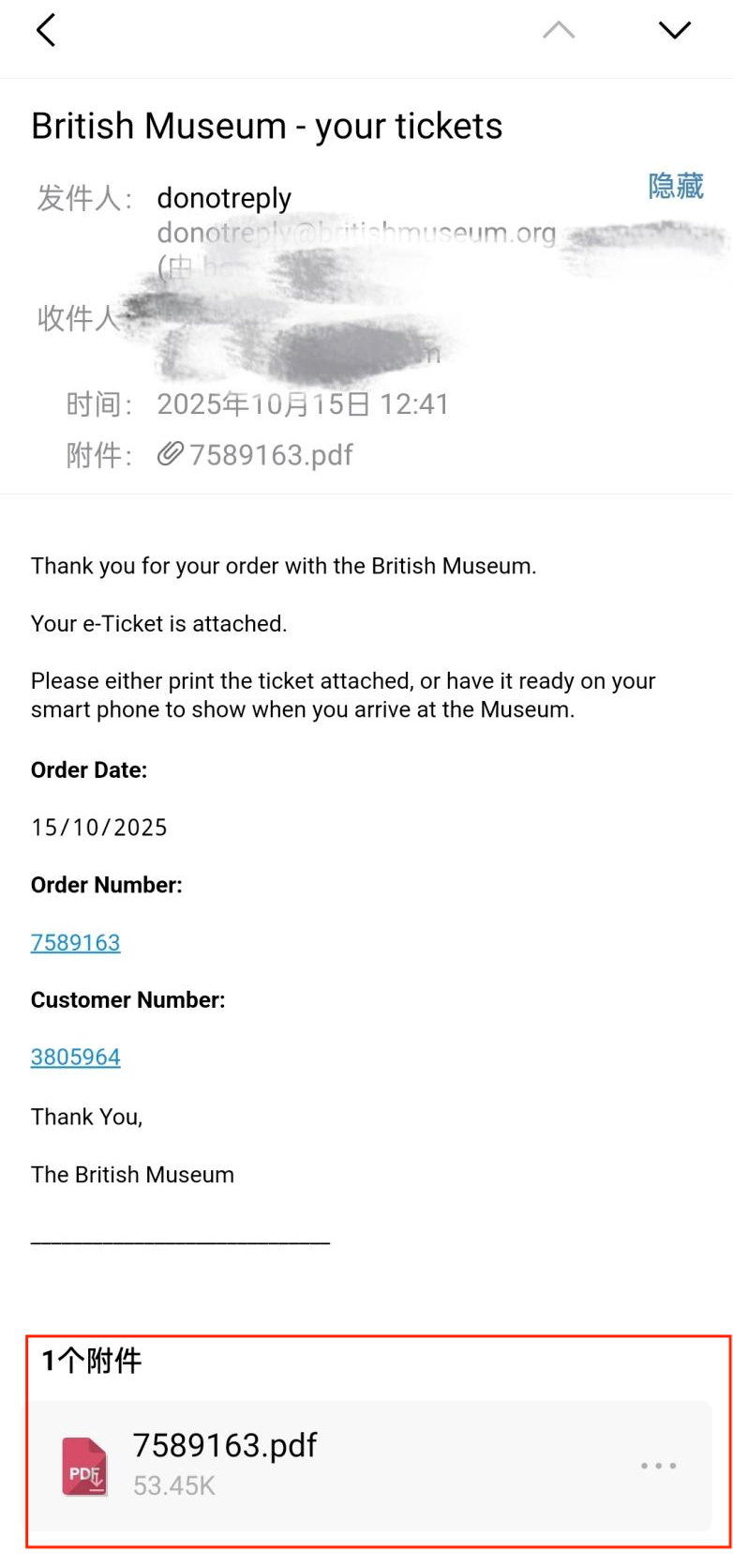 8.打开预订门票所用的邮箱会收到两封邮件,打开带链接的那一封,里面有二维码的电子门票,截图保存,在预约日期和时间段内即可扫码入馆。