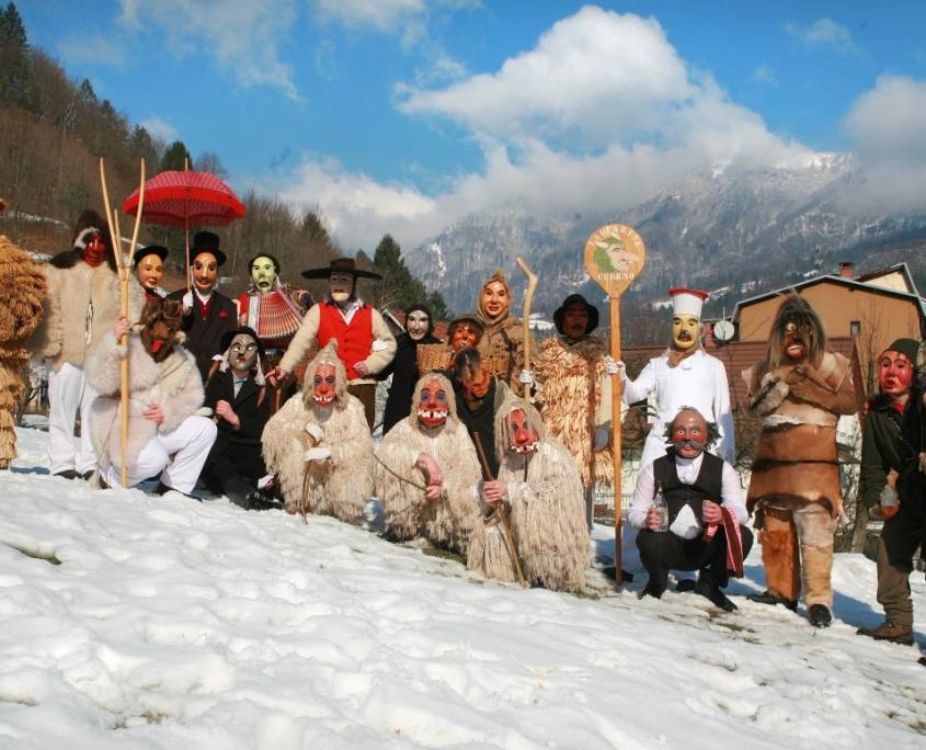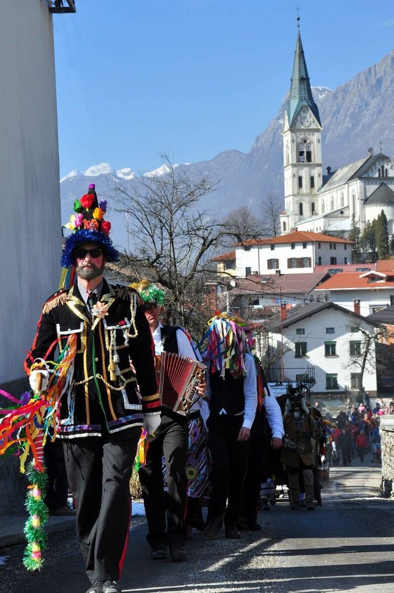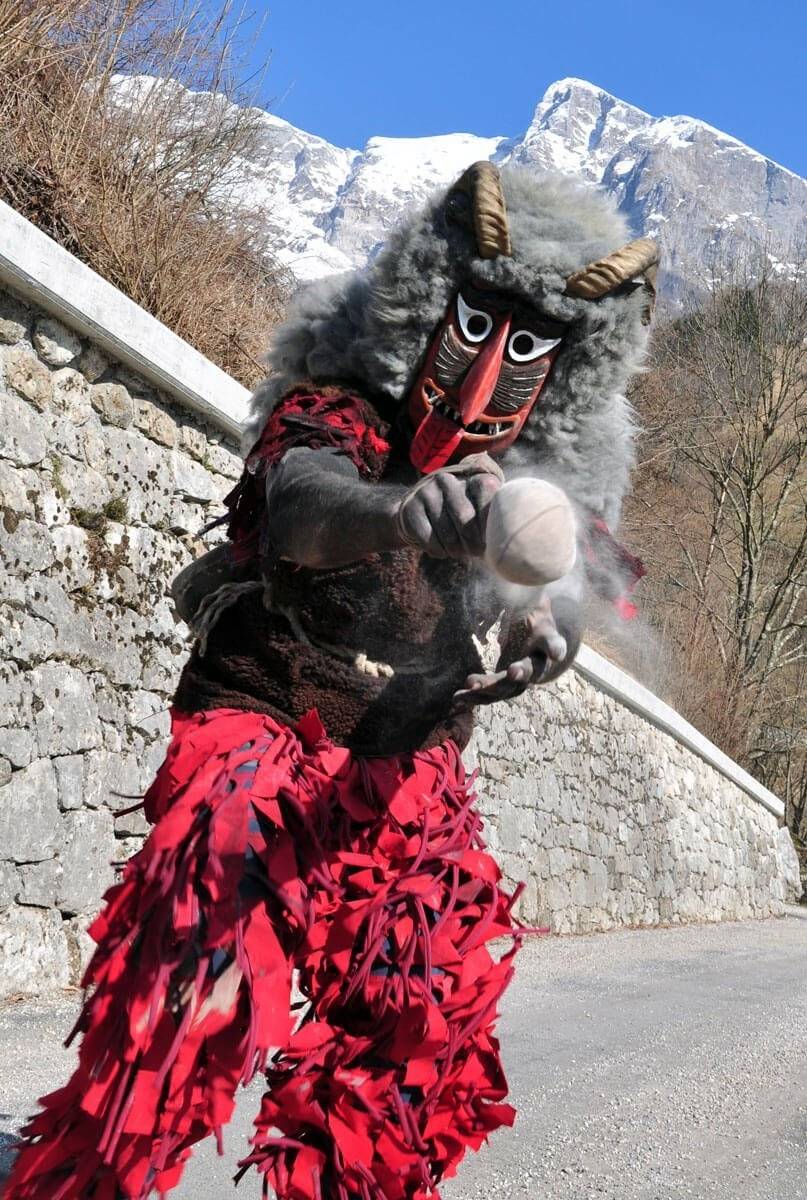 科巴里德(Kobarid)附近的德雷兹尼察(Drežnica)与Drežniške Ravne,当地人会穿着独具特色的狂欢节服饰来迎接春天。
