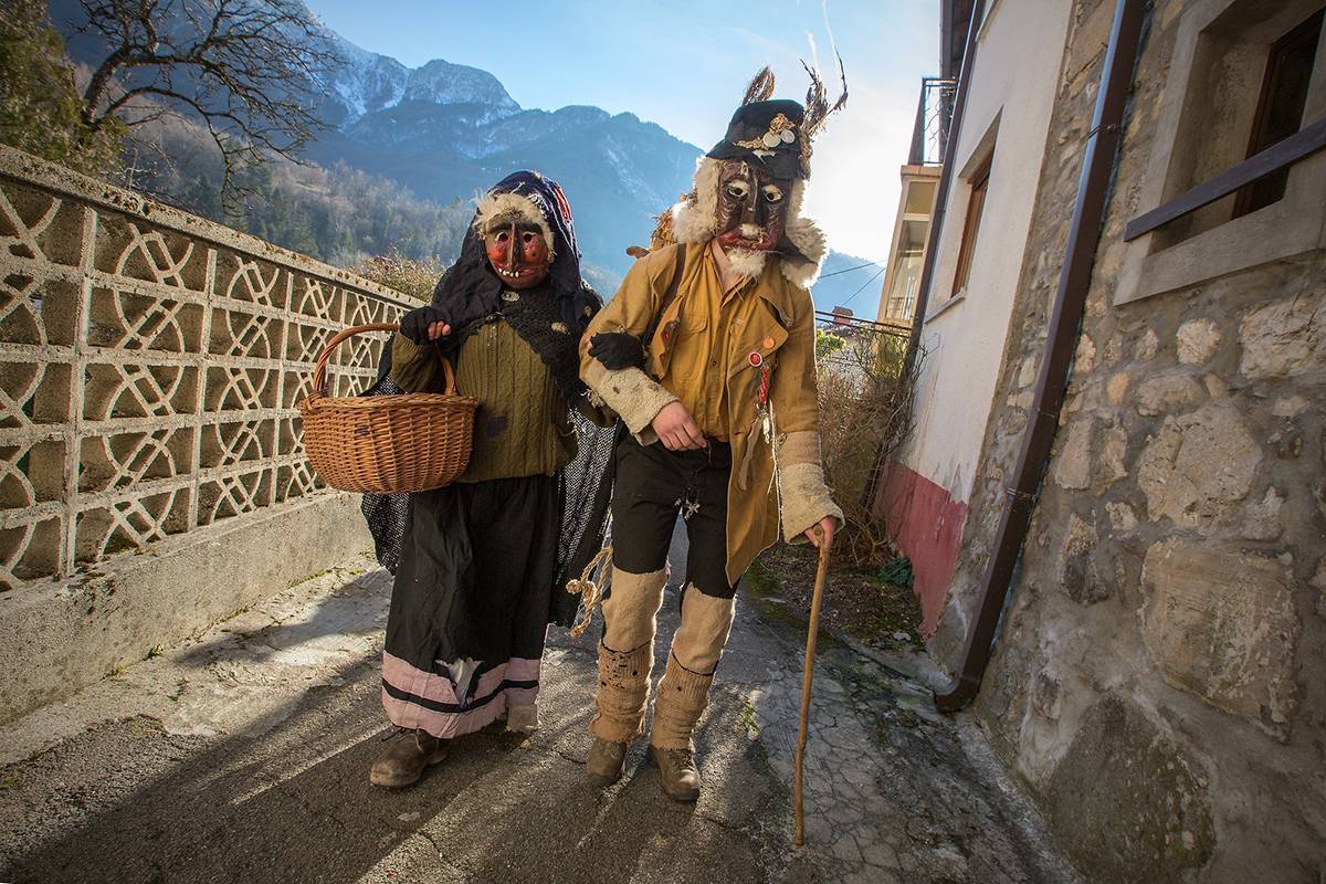 这里的“面具人”分为两大阵营——"丑陋的面具"(Ta Grdi)会追逐孩子并向他们撒灰;而"美丽的面具"(Ta Lepi)会走访各家各户,以舞蹈换取礼物,给居民带来快乐和喜悦。