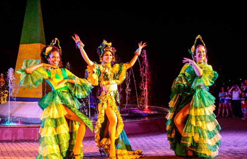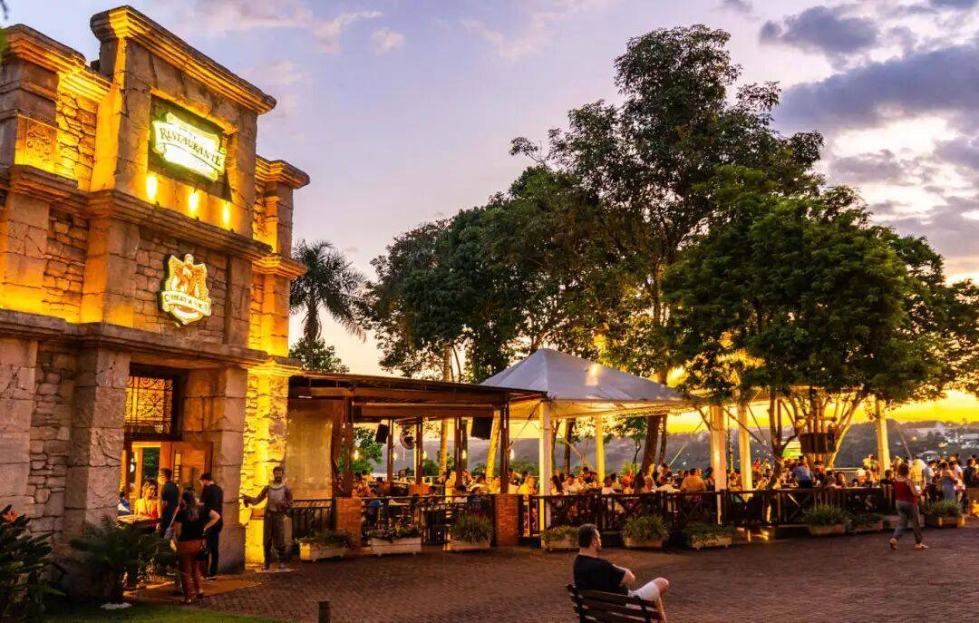 在这里,你可以边品美食,边赏伊瓜苏河(Iguassu River)与巴拉那河(Parana River)交汇的胜景,以及“巴西最美落日”之一。傍晚18:30,灯光秀、风情歌舞、民俗表演轮番登场,全家人都沉浸在南美“最炫民族风”中。