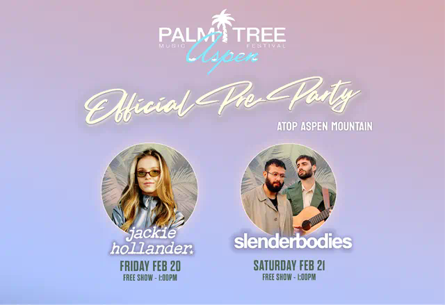 随着Palm Tree音乐节登陆Aspen,位于阿斯本山(Aspen Mountain)山顶的Eleven212将举办官方预热派对。活动期间将由DJ Jackie Hollander(2月20日)与Slenderbodies(2月21日)带来免费现场演出。