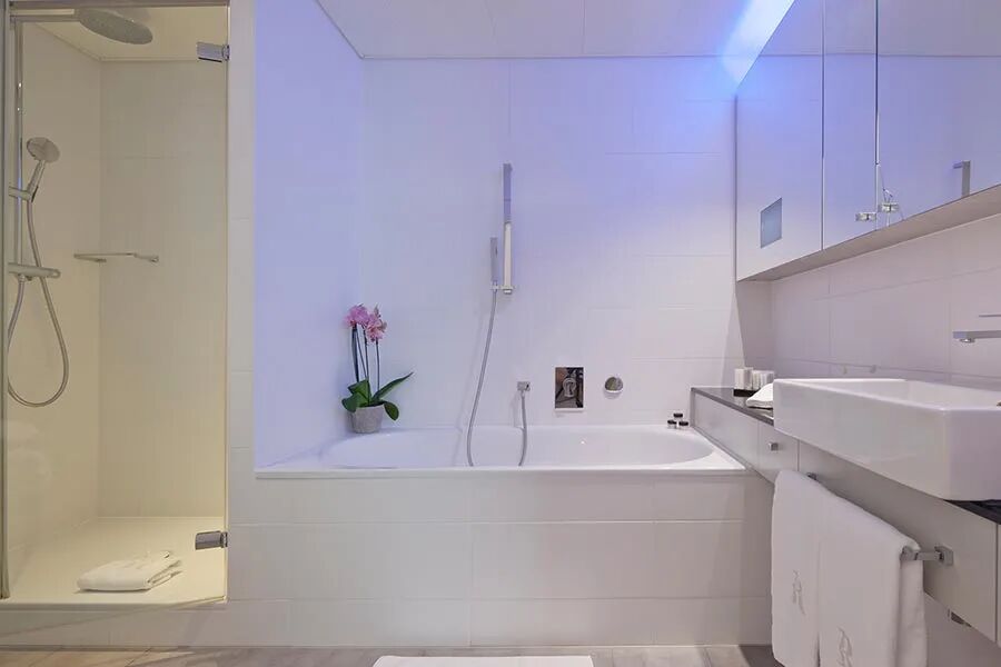 所有户型均标配意大利Frette Duvet丝绸寝具、55英寸高清电视与高速WiFi,还能享受每日清洁、24小时客房服务、免费无限量洗衣等酒店式服务,预约按摩护理可卸下旅途疲惫。