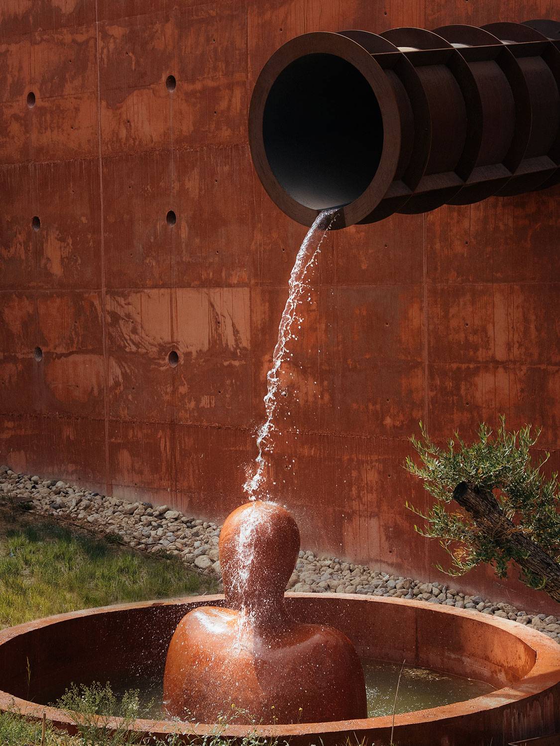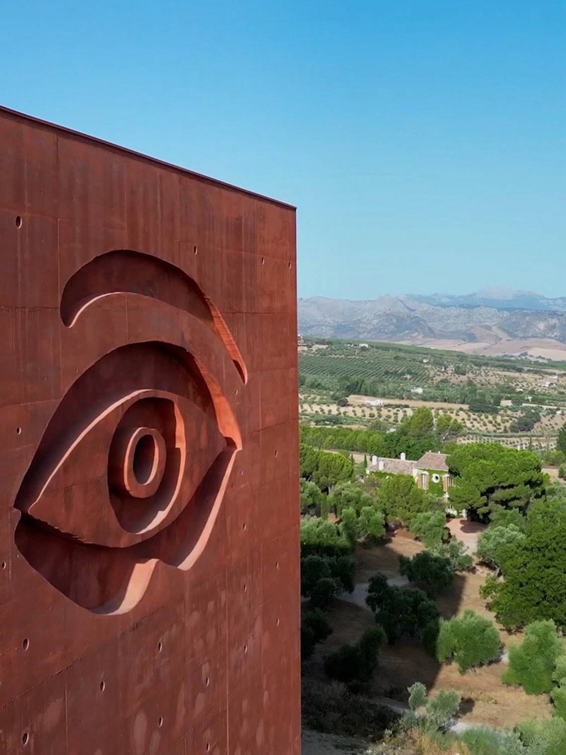 初见阿尔玛扎拉橄榄油坊博物馆(Museo de la Almazara)——世界首家橄榄油坊特色博物馆,你便会被它独特的外形吸引。建筑上突出的牛角造型,是对龙达斗牛传统的致敬;位于建筑正中央的那只“眼睛”,宛如守护者般静静凝视着这片土地;而墙面上精心设计的水道系统,水流在阳光下波光粼粼,仿佛将橄榄油的生命律动,化为了建筑的永恒记忆。这不是一座普通的建筑,而是设计师菲利普•斯塔克(Philippe Starck)为这片橄榄园谱写的一首视觉诗。