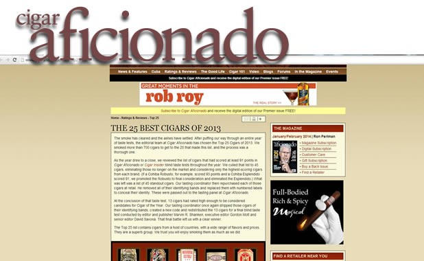 根据美国杂志《雪茄迷》,多米尼加生产的11种雪茄入围了该刊物的“2013世界25佳雪茄”名单。