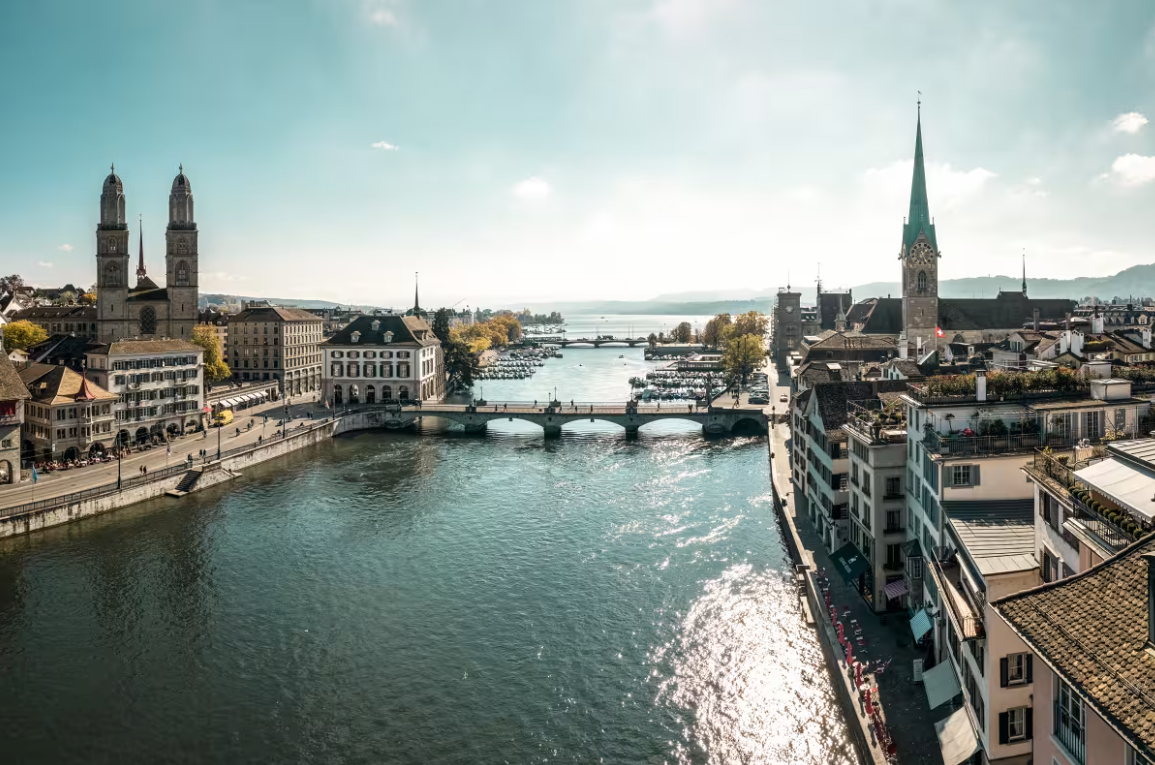 苏黎世的美,在于都市活力与自然静谧的完美交融。利马特河(Limmat River)两岸,西岸是古老的老城区(Old Town),东岸则是充满现代气息的新城区。